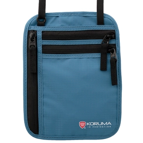 Dyskretna saszetka na pieniądze oraz paszport z ochroną RFID (niebieski)