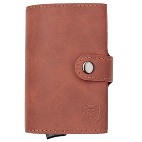 Aluminiowe etui z gumką na karty zbliżeniowe RFID (drewno + czerwona żywica)