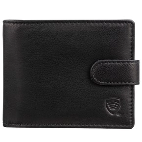 Zapinany portfel męski skórzany na karty zbliżeniowe i monety (czarny)