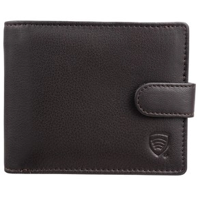 Skórzany męski zapinany portfel na karty i monety SMART RFID BLOCK (brąz)