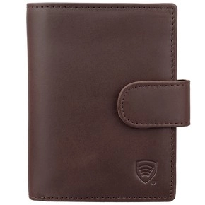 Skórzany pionowy portfel RFID z zapięciem (Brązowy)