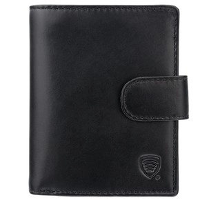 Zapinany portfel męski skórzany na karty zbliżeniowe i monety (czarny)