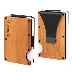 Aluminiowe etui z gumką na karty zbliżeniowe RFID (drewno + czerwona żywica)