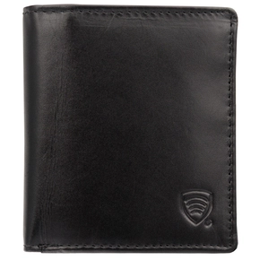 Skórzany portfel trifold chroniący karty zbliżeniowe (Czarny)