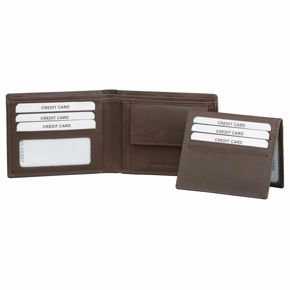 Skórzany męski zapinany portfel na karty i monety SMART RFID BLOCK (brąz)