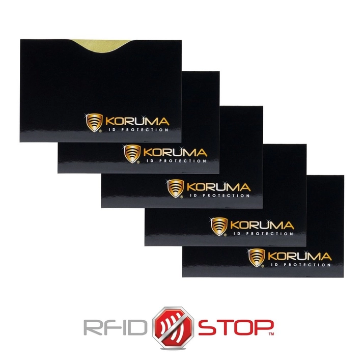 Etui na karty zbliżeniowe - Koruma (poziome, czarne, złote logo) zestaw 5szt.
