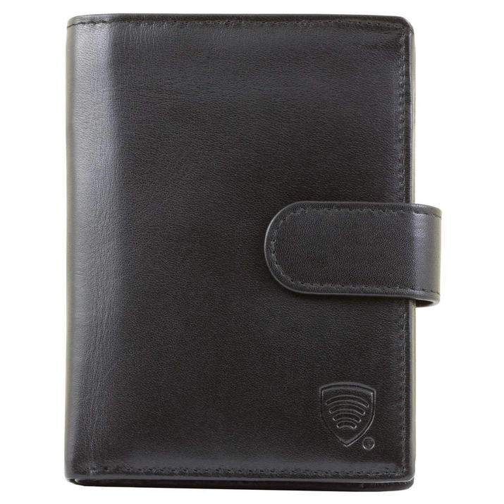 Skórzany pionowy portfel RFID z zapięciem na karty zbliżeniowe (Czarny)