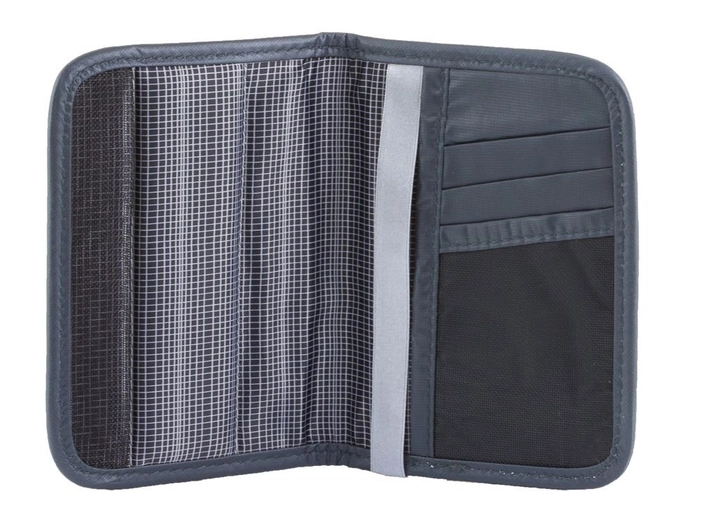 Portfel na karty oraz paszport. Wykonany z poliestru. Wbudowane zabezpieczenie kart zbliżeniowych oraz paszportów biometrycznych.