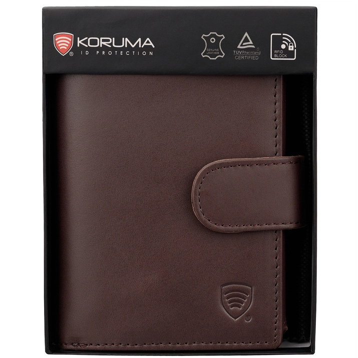 Skórzany męski zapinany portfel na karty i monety SMART RFID BLOCK (brąz)