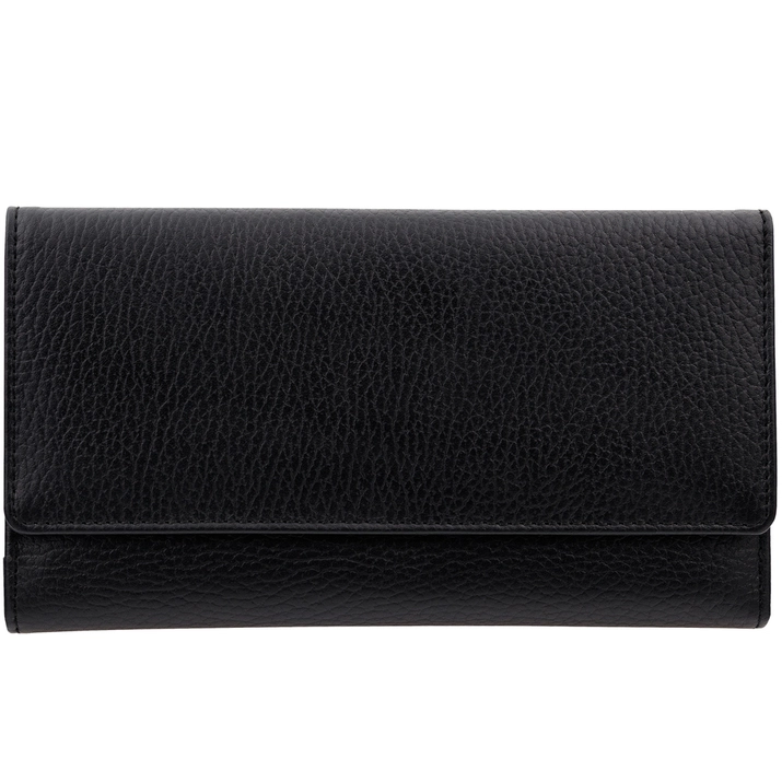 Skórzany Portfel damski z miejscem na telefon (Czarny połysk)