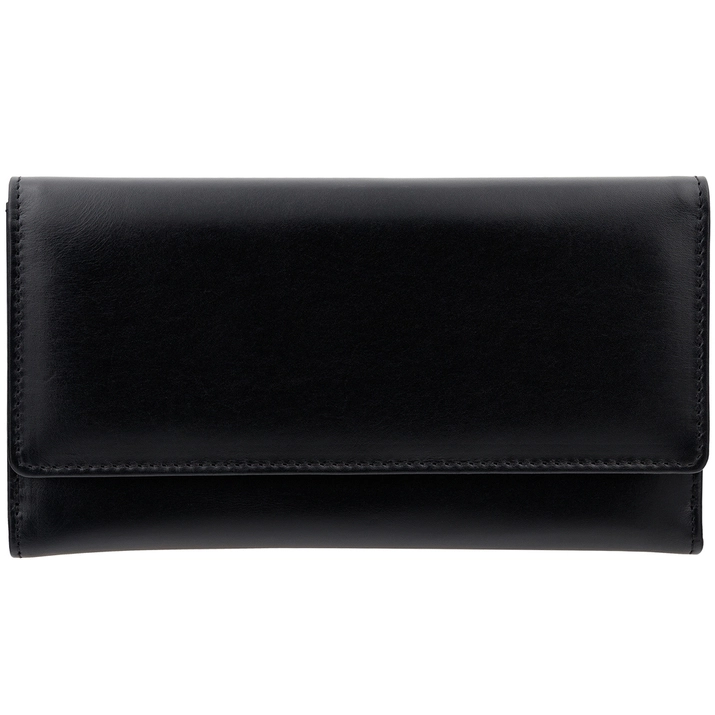 Skórzany damski portfel zabezpieczający karty zbliżeniowe (Czarny gładki połysk)