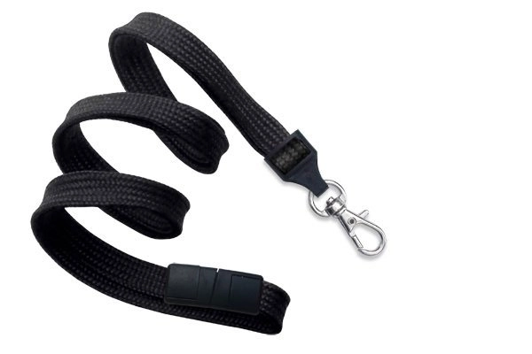 Szeroka 10mm bezpieczna regulowana smycz do identyfikatora + karabińczyk KRAB (Czarny)