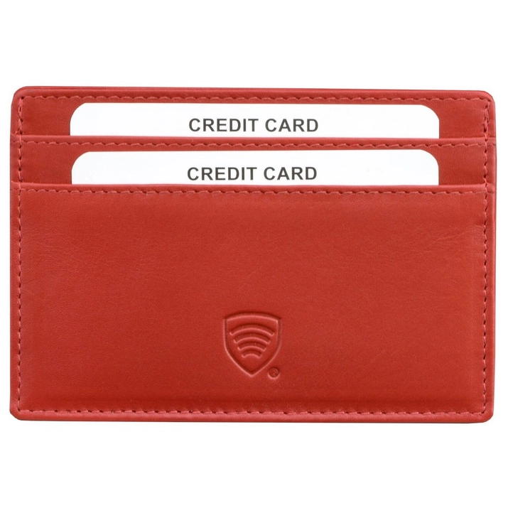 Opinie o Skórzane etui ochronne na karty kredytowe oraz zbliżeniowe z okienkiem (Czerwony)