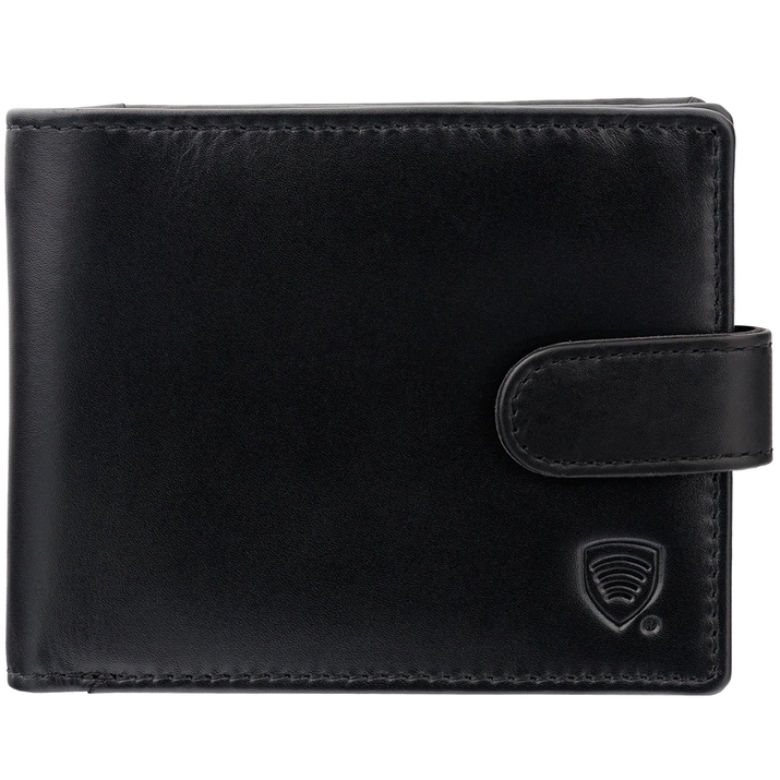 Klasyczny czarny skórzany portfel męski z zabezpieczeniem kart zbliżeniowych RFID BLOCK™.