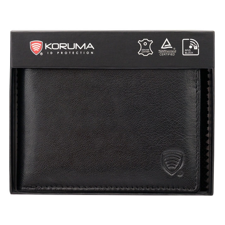 RFID BLOCK - Technologia, która zabezpiecza karty zbliżeniowe, gdy portfel jest zamknięty.