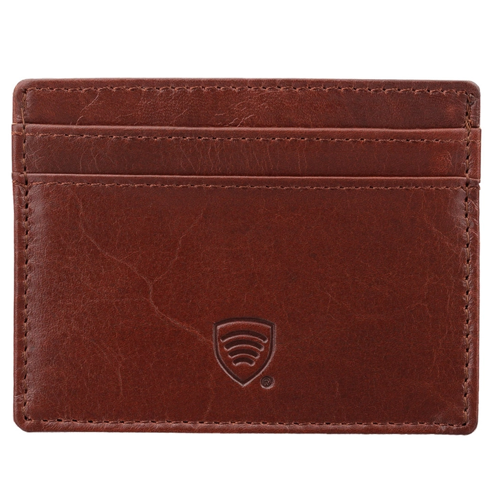 Skórzane etui antykradzieżowe na karty zbliżeniowe (brąz)