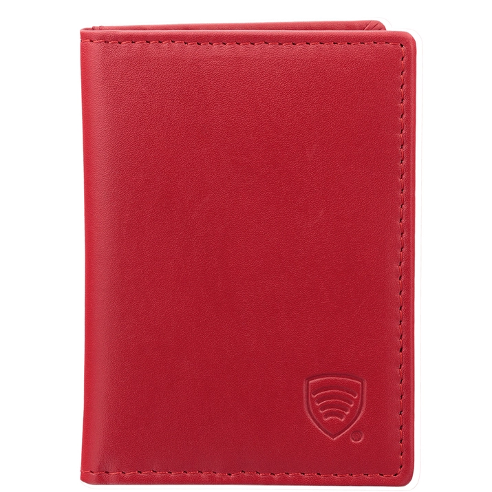 Mały skórzany portfel damski na karty zbliżeniowe RFID z wyciąganym albumem (czerwony)