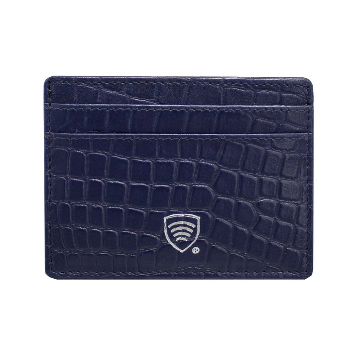 Skórzane etui antykradzieżowe na karty zbliżeniowe RFID (Granatowy, Croco)