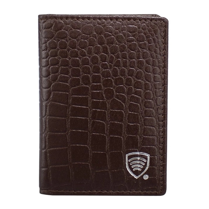 Mały skórzany portfel na karty kredytowe RFID (Brązowy, Croco)