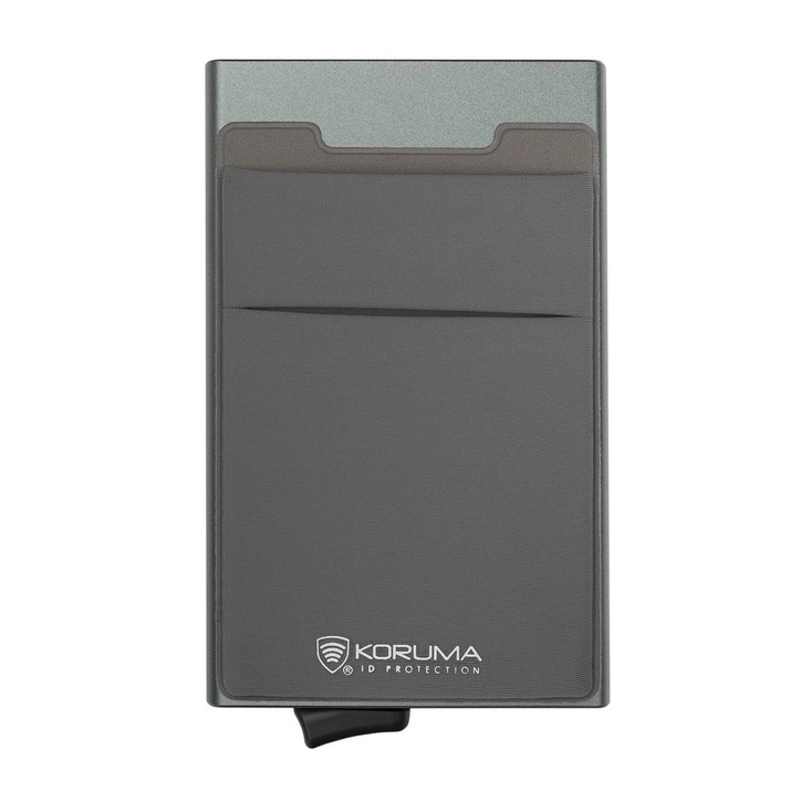 Aluminiowy portfel z wysuwanymi kartami i ochroną kart zbliżeniowych (ciemny szary)