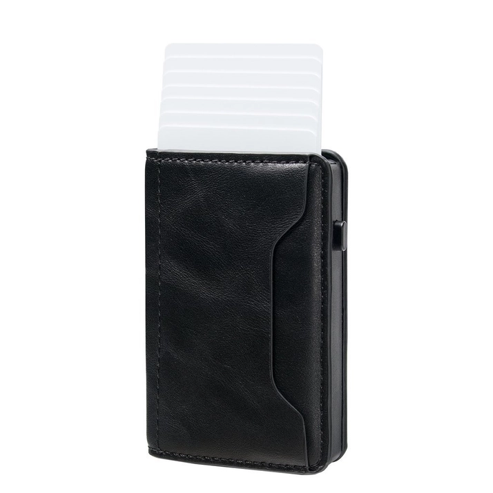 Portfel aluminiowy z wysuwanymi kartami i ochroną kart zbliżeniowych (czarny)