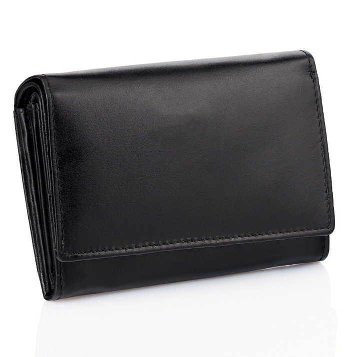 Mały skórzany damski portfel z ochroną RFID (Czarny)