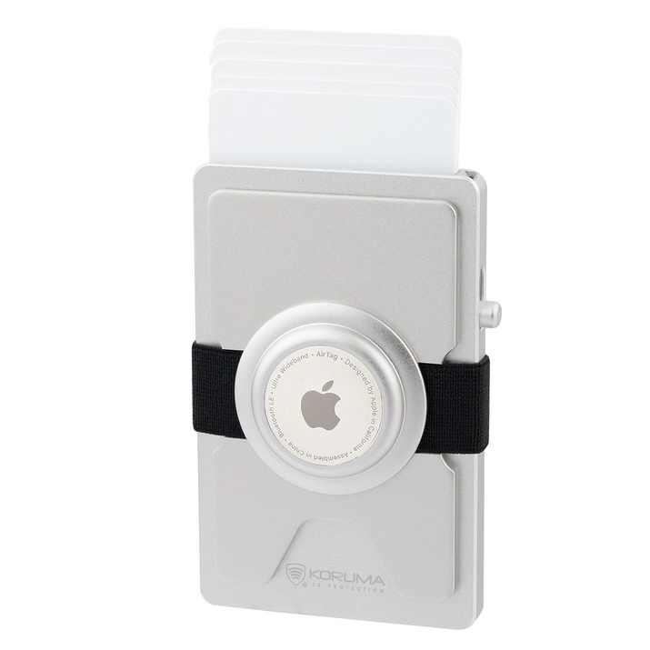 Metalowe etui z wysuwanymi kartami i miejscem na AirTag od Apple (srebrny)