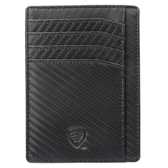 Cienkie skórzane etui na karty zbliżeniowe RFID (czarny, carbon)