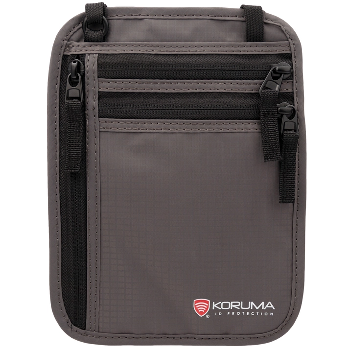 Dyskretna saszetka na pieniądze oraz paszport z ochroną RFID (ciemny szary)